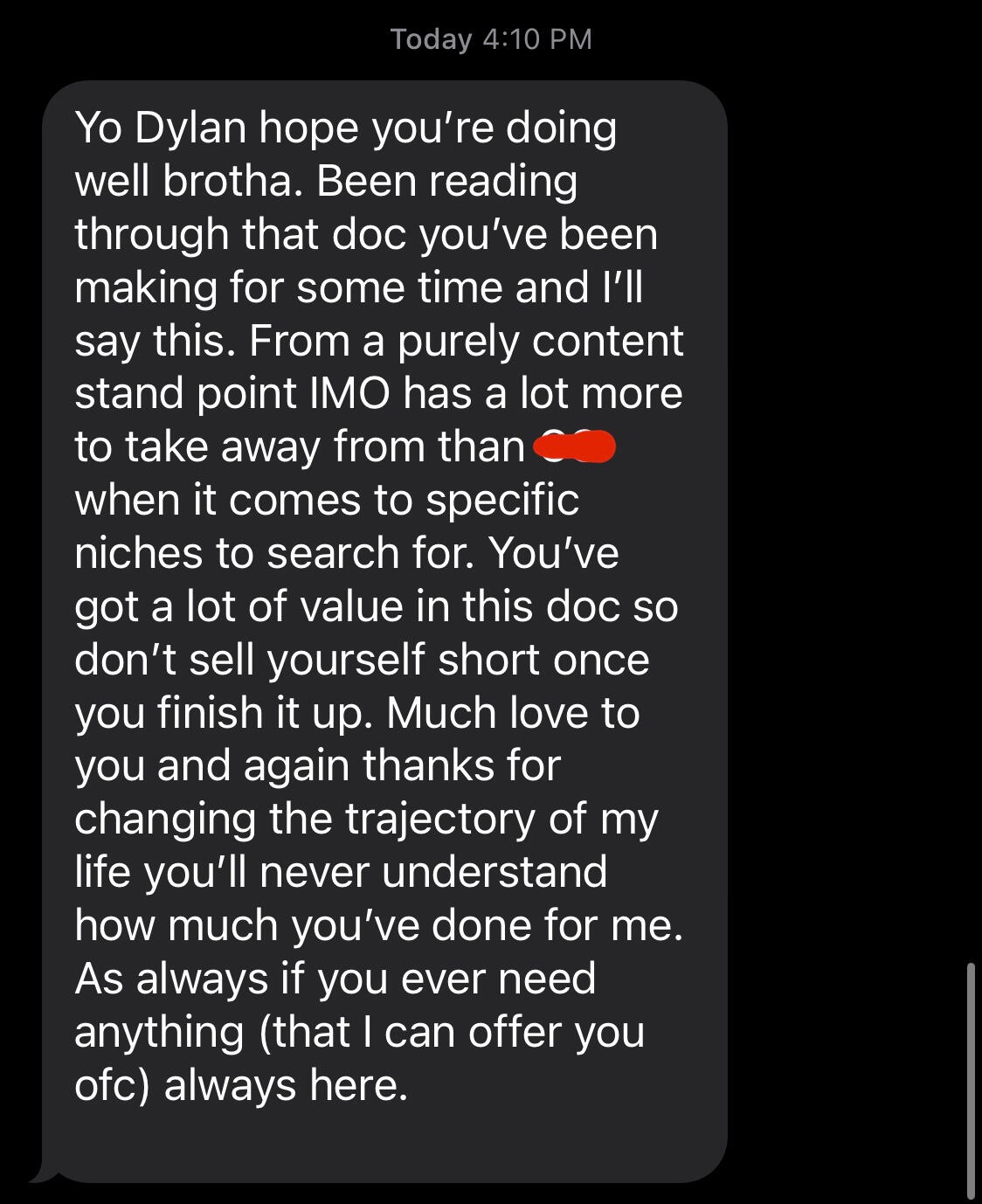 He then sent me the message you'll see below.