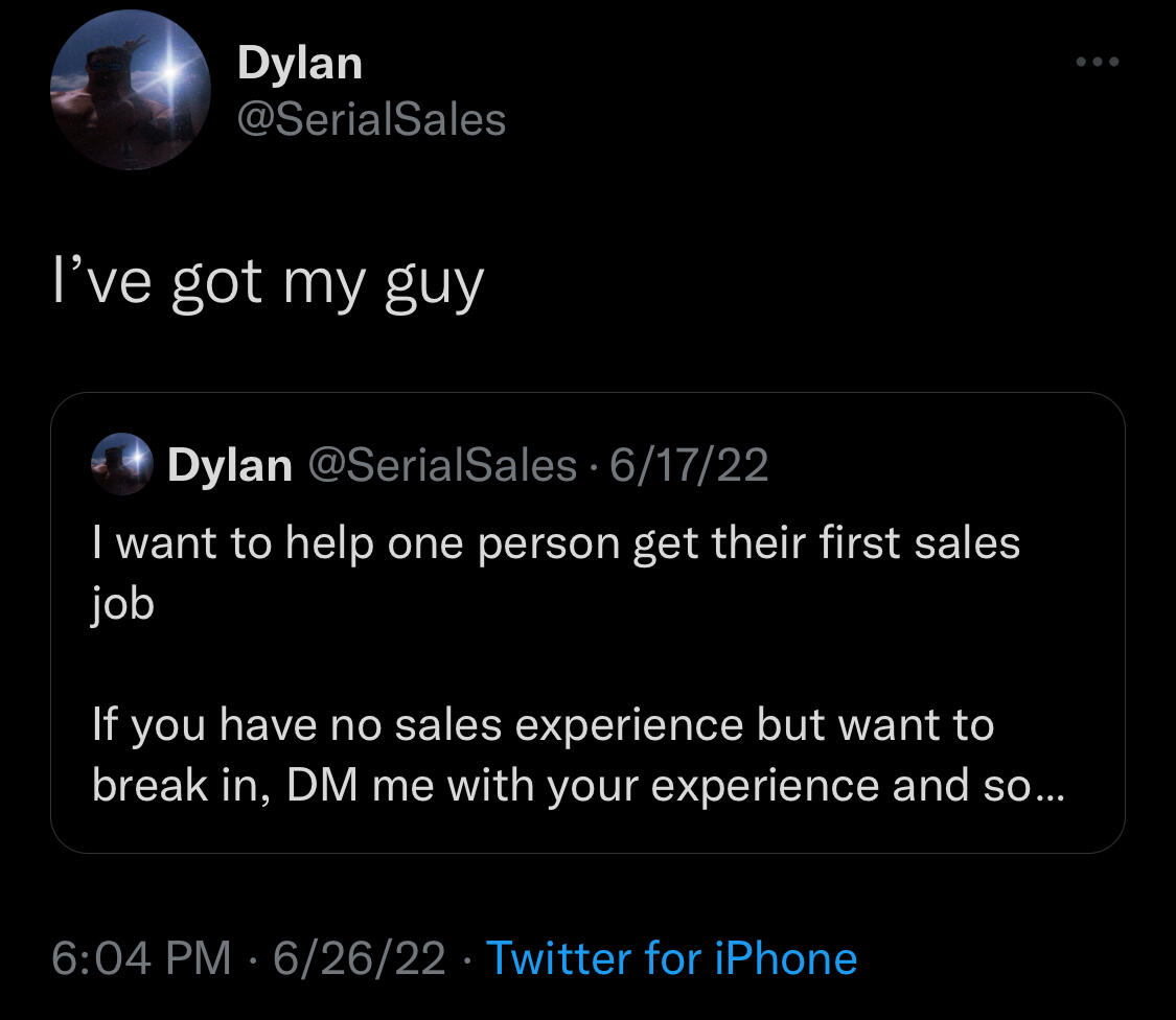 This program is built specifically for the following people:1. You have no sales experience, but you want a remote sales job.2. You have traditional sales experience, but you want a remote sales job.3. You have a remote sales job, but know you'd benefit from 1-on-1 coaching.
